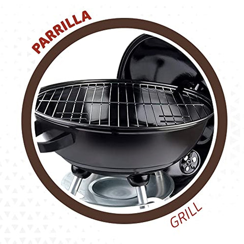 Detalles: Barbacoas de carbón portátiles Cuántas veces has pensado organizar una parrillada en casa con tus amigos pero no has podido hacerlo porque no cuentas con una barbacoa, es posible hacerlo realidad gracias a esta barbacoa de carbón portátil con dos parrillas, una de 35 cm y otra de 43.5 cm de diámetro (esta cuenta con dos mangos fijos en los extremos). Además, esta barbacoa redonda cuenta con una tapa con asa y con rejilla de ventilación para conservar un sabor ahumado en los alimentos y mantenerlos protegidos. Gracias a las dos asas de transporte, a sus ruedas y a su poco peso, podrás transportarla de un lado a otro con facilidad y colocarla donde desees. Esta barbacoa portátil lleva incorporada una bandeja inferior para que puedas dejar los utensilios que estés utilizando y evitar tener que estar haciendo viajes a la cocina. Características Tipo: barbacoa portátil Marca: Aktive Barbecue Color: negro Combustible: carbón Tapa con asa y rejilla de ventilación Superficie metálica para cenizas Rejilla auxiliar inferior Asa de transporte frontal Dos ruedas Incluye: dos parrillas de Ø 35 cm y Ø 43.5 cm (dos mangos fijos en esta) Medidas Barbacoa: Ø 46 x 89 cm Materiales Barbacoa: metal esmaltado Parrillas: acero Uso y mantenimiento Muy fácil de usar y limpiar gracias a su depósito extraíble Se puede mover de sitio incluso mientras está encendida gracias al asa con protección Límpiala bien cada vez que la utilices para mantenerla como el primer día Disfruta del auténtico sabor a brasa con las barbacoas y accesorios Aktive Barbecue