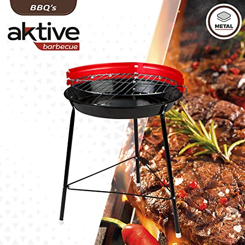 - Barbacoa con 3 patas de Aktive Sport fabricada de hierro esmaltado negro y rojo