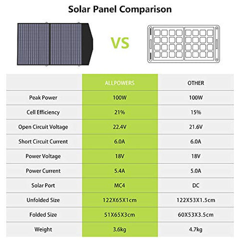 - ▶ 【Alta eficiencia】: la celda solar de 100W está fabricada en los EE. UU., Hasta un 22% de eficiencia, lo que proporciona una alegría infinita para la computadora portátil y otras baterías bajo el sol
