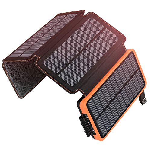 - Cargador portátil para exteriores: Este cargador solar de alta capacidad es especialmente adecuado para acampar, ir de excursión y viajar de mochilero. Se puede acoplar a su mochila y está equipado con una práctica linterna en la parte posterior.