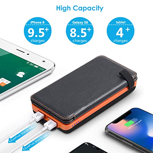 - Salidas duales: El cargador solar ofrece dos salidas ampliamente compatibles, por lo que es súper conveniente cargar dos dispositivos simultáneamente. Una tapa de goma protege los puertos de la suciedad y la humedad.