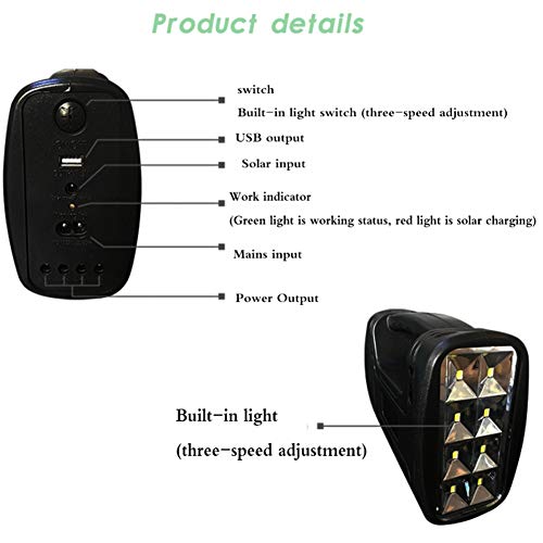- ♚ 【GENERADOR SOLAR MULTIFUNCIONAL】 : Tiene fuente de alimentación de respaldo, iluminación, carga y otras funciones, carga de energía solar, protección ambiental y ahorro de energía. Puede usarlo donde haya luz solar. No utilice paneles solares.