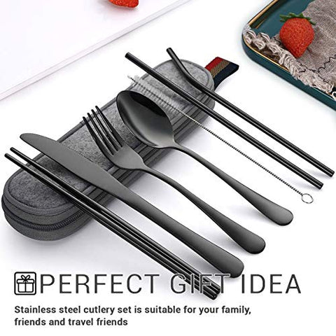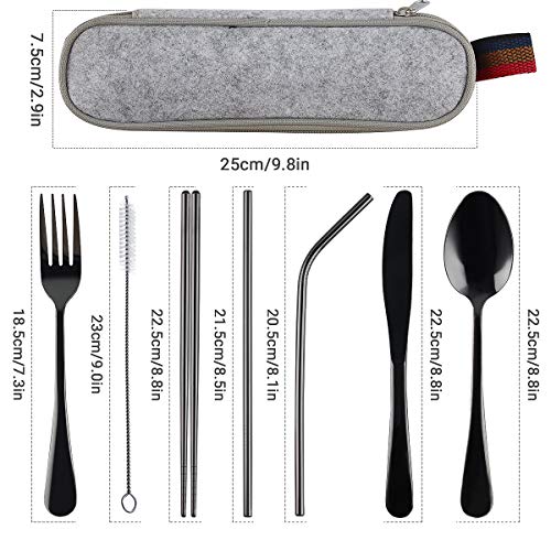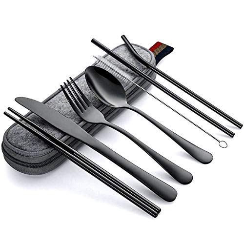 - 【UTENSILIOS PORTÁTILES REUTILIZABLES DE 8 PIEZAS CON ESTUCHE】: Incluye cuchillos / tenedor / cuchara / palillos / paja recta / paja curvada / cepillo limpio / estuche portátil.