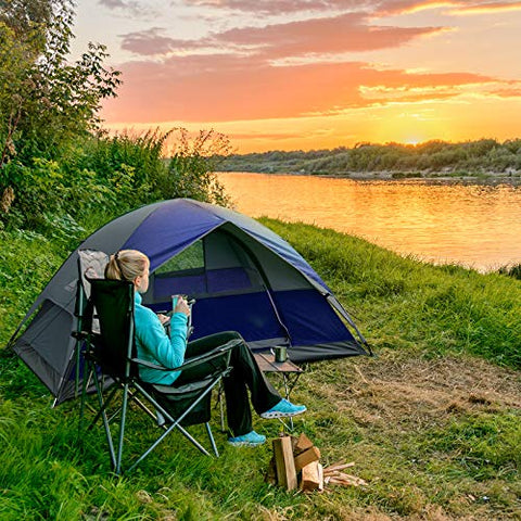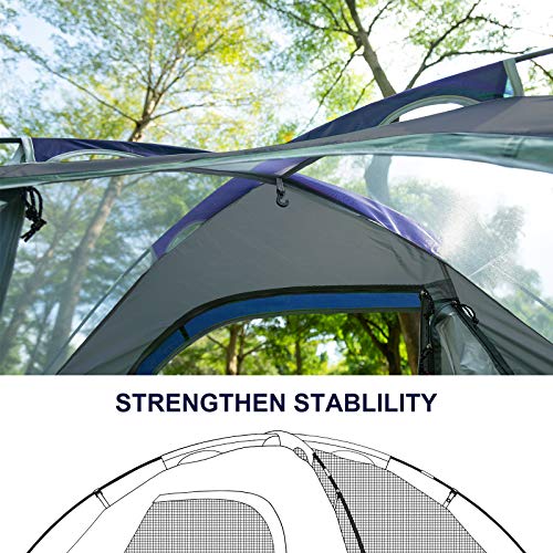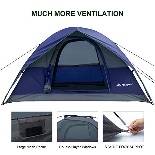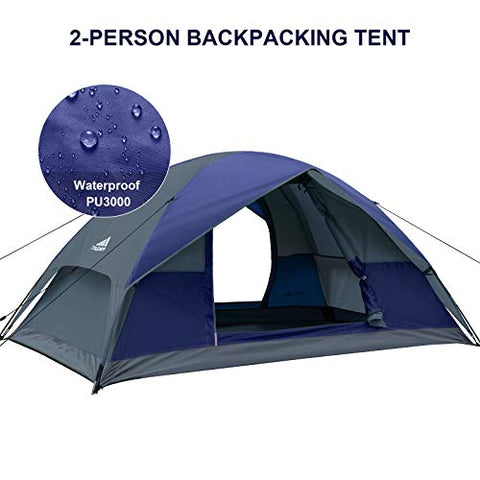 - Amplia tienda de campaña para 2 personas: con dos puertas y dos agujas, con capacidad para dos personas. El tamaño desplegado es de 225 cm de largo, 135 cm de ancho y 110 cm de alto en el interior. El peso es de solo 2Kg.