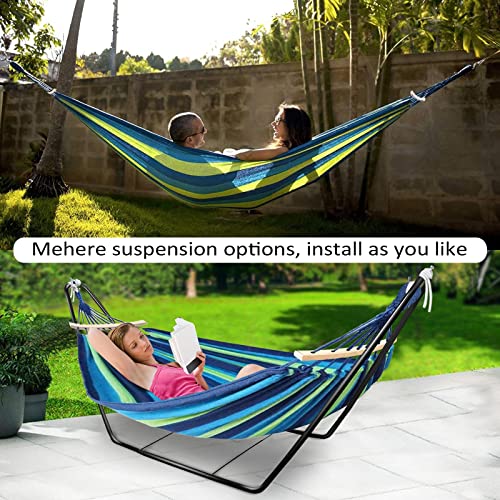 - Tela cómoda y transpirable: hamaca hecha de lona de algodón, la hamaca plegable de algodón no solo puede ser suave, transpirable y agradable al tacto, sino que también es duradera y tiene una larga vida útil.