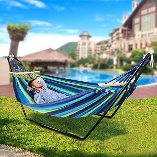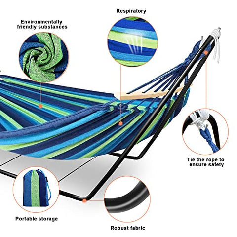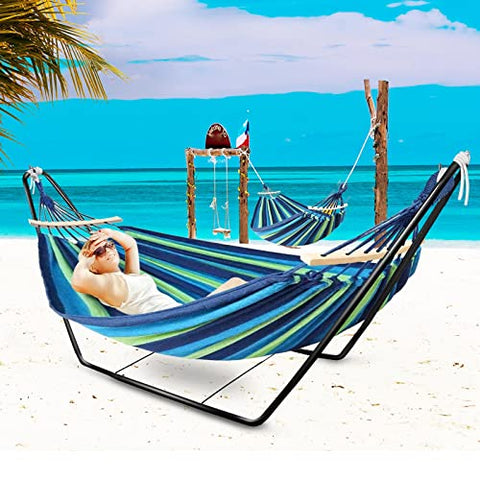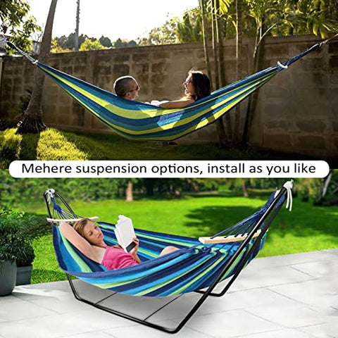 - Incluso un novato se puede montar fácilmente: el soporte de metal es muy fácil de instalar y se puede montar en menos de 5 minutos, luego puedes disfrutar de tu tiempo de relajación, o puedes utilizar la cuerda de nailon extendida incluida para colgarlo entre 2 árboles/vigas en tu patio trasero. Disfrutarás de la libertad de la hamaca en el lugar más conveniente y disfrutarás de la belleza de la naturaleza.