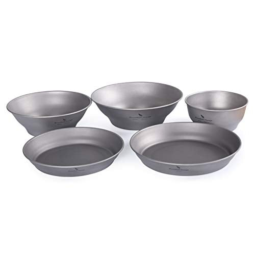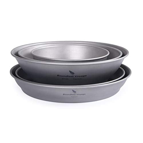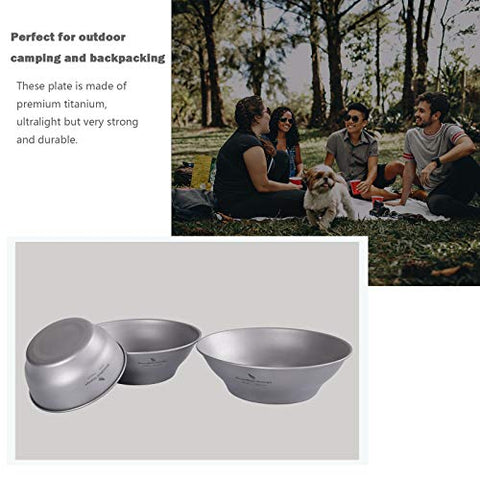 - ● Ligero y súper fuerte: los tazones y platos son muy livianos, ideales para viajeros que llevan en su mochila. También viene con una bolsa de almacenamiento de malla para facilitar su transporte; La mejor parte es que el cuenco de titanio es ligero y superresistente al mismo tiempo. Alta dureza, sin deformación, estructura sólida.