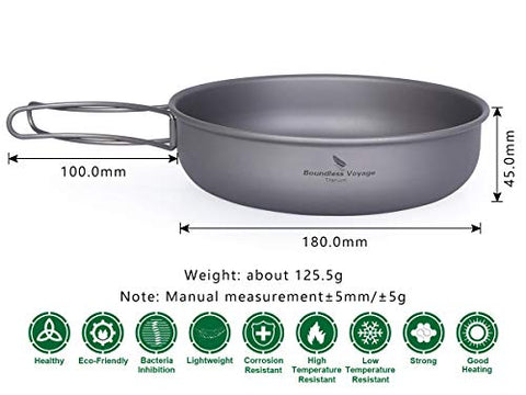 Detalles: Sartén de titanio Sartén con mango plegable Ultraligero Camping Picnic Sartén Plancha Vajilla Vajilla de viaje Plato plano Picnic Kits de desordenModelo: Ti15144IMaterial: 99.8% de titanioTamaño: aproximadamente 80180 * (H) 45 mmPeso: aproximadamente 125.5gLugar de origen: Chinacaracteristicas:1. Hecho de titanio, ligero y más fuerte que el acero; nunca se oxida, anticorrosión de ácidos y álcalis;2. Buen rendimiento de transferencia de calor, sabor no fácil de chupar, fácil de limpiar;3. Explosión antihuellas en la superficie para evitar huellas digitales durante el uso;4. Asa plegable, más fácil de transportar y ahorrar más espacio.