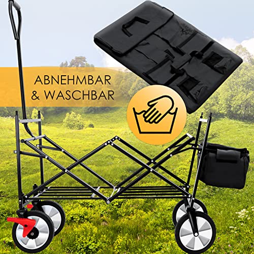 - 𝐏𝐋𝐄𝐆𝐀𝐁𝐋𝐄: este gran carro de mano con techo ofrece suficiente espacio y, gracias al grueso acolchado del chasis, mucha comodidad para los pequeños pasajeros. ¡Déjate también inspirar por nosotros! con freno en la rueda delantera