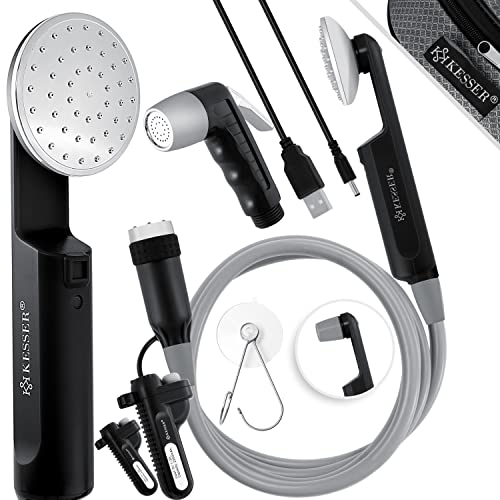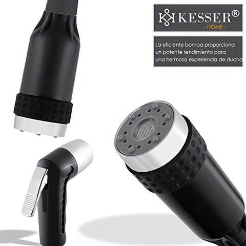 - Con esta ducha móvil de camping recargable KESSER con bomba recargable, podrás ducharte donde quieras, limpiar el coche, duchar a tu perro en el jardín o tenerlo a la mano para pequeños trabajos de limpieza, por ejemplo, durante el campamento, senderismo, surfeo u otras actividades: a partir de ahora, siempre tendrás tu ducha contigo.