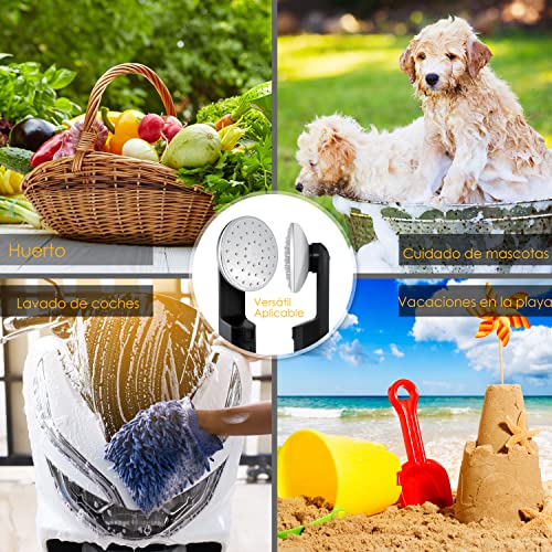 - 𝐈𝐍𝐂𝐋. 𝟐 𝐁𝐀𝐓𝐄𝐑Í𝐀𝐒 𝐑𝐄𝐂𝐀𝐑𝐆𝐀𝐁𝐋𝐄𝐒: la batería recargable dura hasta 60 minutos. La ducha de exterior con bomba de batería es la solución ideal para acampar o estar de viaje. Se puede fijar cómodamente con una ventosa o un gancho