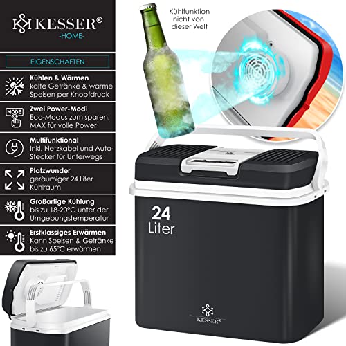 - 𝐅𝐔𝐍𝐂𝐈Ó𝐍 𝐃𝐄 𝐑𝐄𝐅𝐑𝐈𝐆𝐄𝐑𝐀𝐂𝐈Ó𝐍 𝐘 𝐂𝐀𝐋𝐄𝐍𝐓𝐀𝐌𝐈𝐄𝐍𝐓𝐎: la nevera Kesser de 24 litros te proporciona bebidas frías en verano y alimentos calientes en invierno. Este todoterreno está equipado con una función de refrigeración y calefacción. Gracias a la función de mantenimiento del calor controlada por el termostato, los alimentos pueden mantenerse calientes hasta una temperatura de 65 grados.