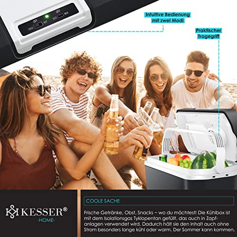 - 𝐌𝐀𝐗 𝐘 𝐌𝐎𝐃𝐎 𝐄𝐂𝐎: con la función de refrigeración, es posible enfriar tus bebidas o alimentos hasta 18 grados por debajo de la temperatura exterior. La ventaja de la nevera Kesser es que no necesitas una nevera cuando se hace una barbacoa en verano. Se pueden mantener las bebidas y los alimentos frescos en la caja. La nevera está equipada con 2 niveles de potencia diferentes: MAX y ECO.