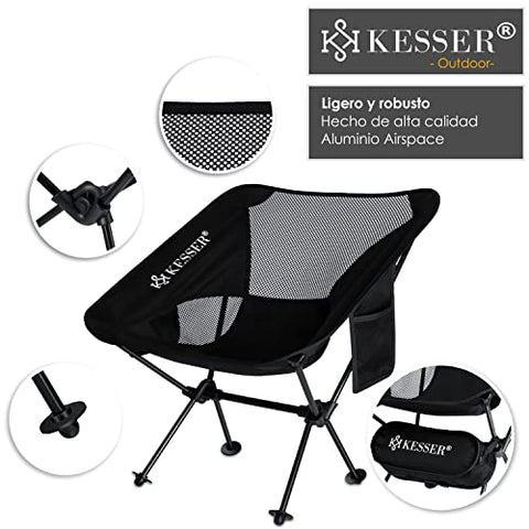 - 𝐕𝐄𝐑𝐒𝐀𝐓𝐈𝐋𝐈𝐃𝐀𝐃: perfecta para viajes de camping, eventos deportivos y fiestas en el jardín, esta silla de camping con bolsa de transporte de KESSER es ideal, ya que siempre tendrás un asiento cómodo a mano, sin importar dónde te encuentres. La robusta estructura de postes de aluminio de la carpa también garantiza la estabilidad y un soporte firme.