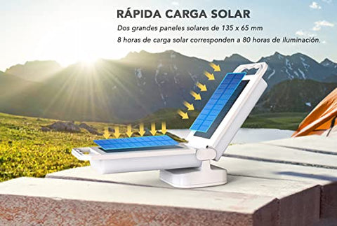 - 🌞 CARGUE LA LINTERNA GRATIS CON EL SOL: 2 enormes paneles solares de alta eficiencia incorporados le permiten cargar rápidamente la linterna solar GRATIS con la luz solar directa. Con batería recargable de 4400 mAh, dura hasta 80 horas después de una sola carga, nunca te quedarás a oscuras.