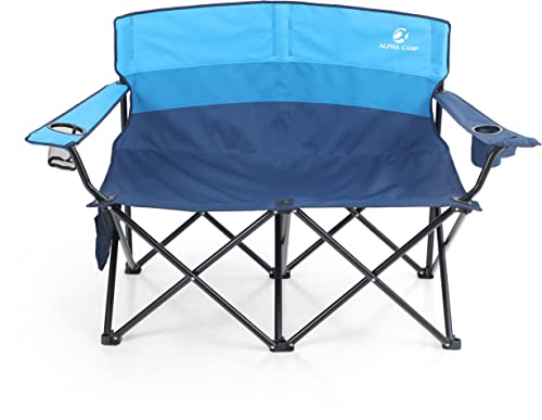 - Tamaño grande: el tamaño de la silla plegable doble de gran tamaño es de 21.6 pulgadas de largo x 42.1 pulgadas de ancho x 39.4 pulgadas de alto, el peso es de 16.6 libras, gran área de asiento con tela Oxford acolchada de 600 x 300D y reposabrazos acolchado garantizan la comodidad de esta silla
