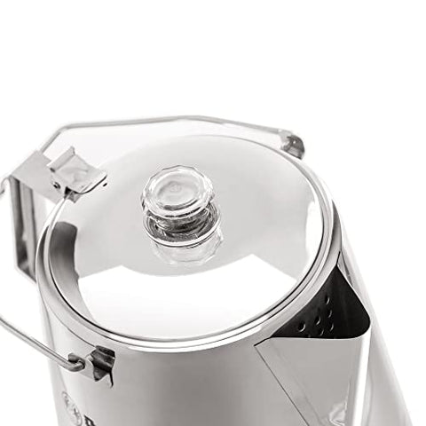 Detalles: Degelijke RVS percolator met glazen knop. Zet de beste koffie boven je kampvuur. Goed voor maar liefst 14 koppen koffie!