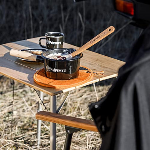 Detalles: El peso ligero en la aventura de cocina! La olla esmaltada con mango es el compañero perfecto para tu viaje de camping. El mango de madera es una protección natural contra el calor y te permite sin problemas hacer que el fuego se queme. La maceta tiene una escala en el interior para obtener la medida correcta. La superficie es resistente a los arañazos y fácil de limpiar, todo lo que es importante en el viaje de camping. Además, el acero esmaltado es adecuado para todos los fuegos y tipos de fuegos. La maceta de esmalte Petromax tiene una capacidad de 0,5 litros y está disponible en dos colores. Si tienes 0,5 litros muy poco, también hay una talla más grande con 1 litro de capacidad. Los colores combinan perfectamente con el resto de los platos Petromax para camping