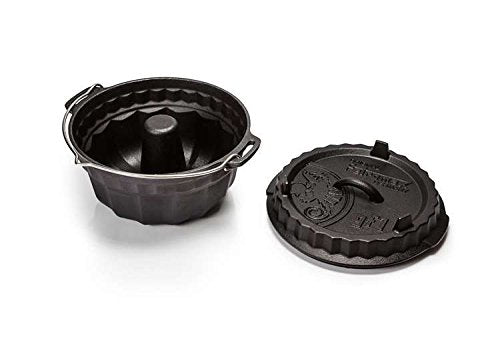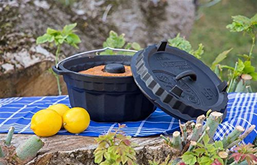 Detalles: Tamaño: 23,8 x 23,8 x 16,3 cm. Peso: 6,2 kg. Capacidad: 3,0 litros. El molde de hierro fundido para hornear pasteles concéntricos (Ø23 cm) y base para tartas (Ø22 cm) en la tapa es adecuado tanto para el horno como para el fuego abierto. La tapa multifuncional tiene una forma de base para tartas en el interior y patas para colocar en el exterior. Fácil de usar gracias a su asa de transporte.
