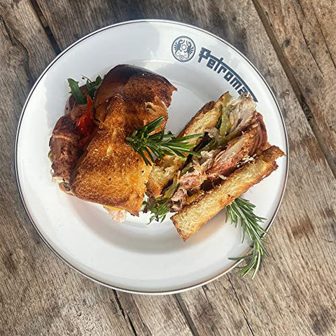 Detalles: Los platos de esmalte Petromax son los platos de calidad alimentaria con los que se sirven jugosos filetes, verduras con tiras de barbacoa y panqueques salados. Porque los platos son higiénicos y a prueba de golpes gracias al borde de acero inoxidable. Son ideales para viajar gracias a su peso ligero, además son resistentes a los arañazos y se pueden limpiar rápidamente. Por lo tanto, siempre están a mano y les gusta ser vistos en cada hoguera. Los fanáticos del diseño retro vienen a su costa, así como aquellos que aprecian las buenas propiedades del esmalte material tradicional. Cada paquete contiene dos platos de esmalte del mismo color.
