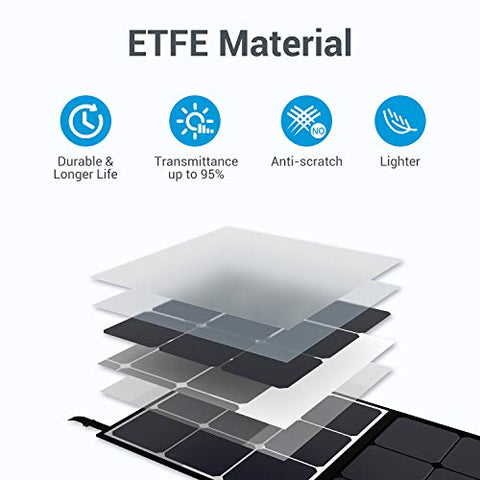 - 【Material duradero y de alta calidad】La superficie frontal de este panel solar PowerOak 200W está hecha de material ETFE y la superficie trasera está hecha de material TPT. Estos materiales son duraderos, resistentes a la corrosión, resistentes al envejecimiento y el nivel de impermeabilidad alcanza hasta IP65. Estos materiales duraderos pueden proteger eficazmente el panel solar para que pueda utilizarse durante mucho tiempo.