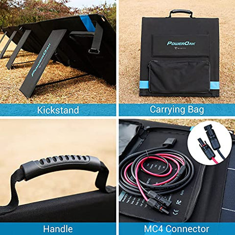 - 【Plegable y portátil】 Este panel solar PowerOak 200W es ligero y portátil. Se puede doblar en 4 piezas para que puedas llevarlo cómodamente cuando no lo uses. Es muy adecuado para uso en exteriores, especialmente cuando vas de campamento o viajas en una autocaravana.