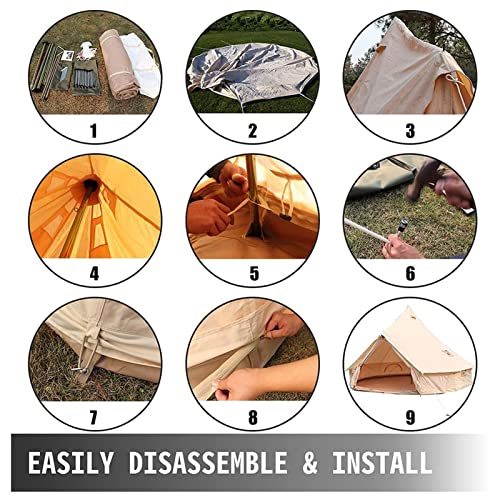 - Tienda de lona de algodón impermeable: La tienda de campaña para la estufa está hecha de lienzos de algodón con tratamiento a prueba de agua y ha grabado la costura de la puntada. Es más duradero resistir vientos, lluvia y nieve.