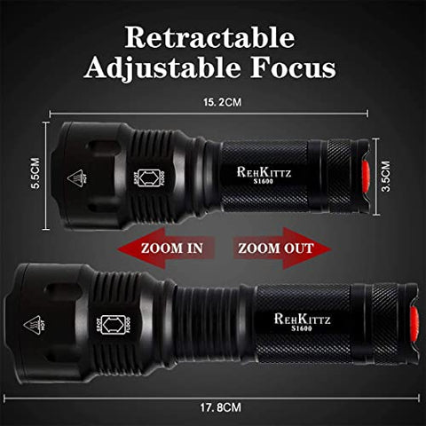 - 【ZOOM Y VAROUS MODOS DE USO】 Enfoque objetos que se encuentren a cientos de pies de distancia o aléjelos para barrer un área mayor. Los varios ajustes reemplazan la necesidad de múltiples linternas, linterna led práctica para cualquier kit doméstico o de emergencia.