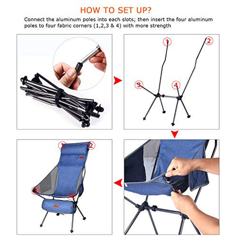 - Fácil de configurar: esta silla se puede configurar en segundos. Simplemente haga un poste, sujete la tela del asiento al marco y estará listo para tomar un descanso y disfrutar de sus actividades. Ideal para practicar senderismo, acampar, pescar, cazar, ver fútbol, hacer picnics, barbacoas y muchas otras actividades al aire libre.