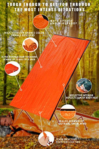 - 【Retención de Calor】Este saco de emergencia proporciona retención de calor y aislamiento térmico en situaciones de supervivencia. Forrado con un material aislante reflectante de calor, similar a las mantas de emergencia, este es un componente esencial para tener en kits de supervivencia o acampada/camping. ¡Sin duda te mantendrá caliente!
