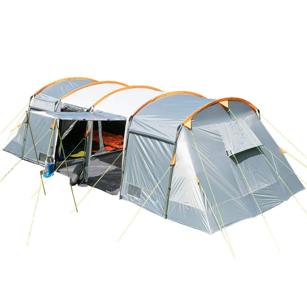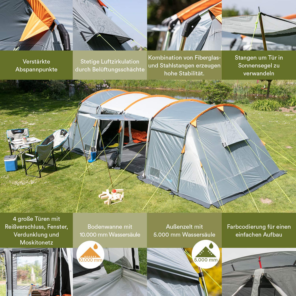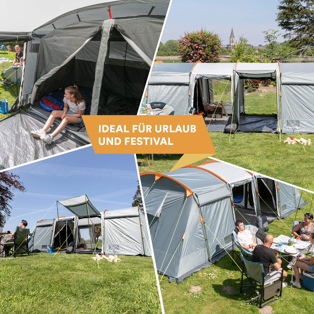 - ✔ ESPACIOSA: la tienda de campaña para 8 personas de 21 m² tiene una altura de pie de 200 cm, una amplia zona de estar y 3 cabinas para dormir con su propio suelo cosido y mosquitera para dormir sin insectos y a gusto.